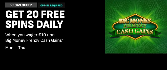 *Free Spins: max 20 per day 19/01/26 - 22/01/26. Big Money Frenzy Cash Gains only (3 day expiry, 10c per spin). T&Cs apply.